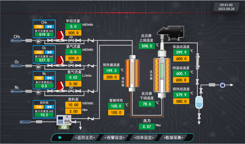 實(shí)時(shí)檢測(cè)顯示預(yù)熱、反應(yīng)管路壓力。